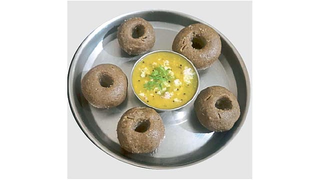 २. हाताने उंडे बनवून मध्यभागी एक छिद्र बनवणे व चाळणीत ठेवून वाफवणे.