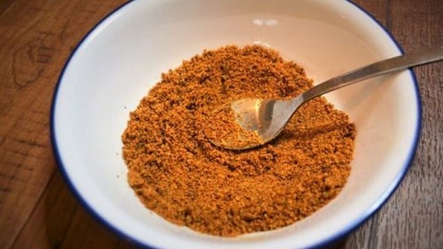साहित्य- ३ चमचे कांदा पावडर, ३ चमचे लसूण पावडर, अडीच चमचे कॉर्न फ्लॉवर, १ चमचा मिरची पावडर, २ चमचे आमचूर पावडर, दीड छोटे चमचे (टिस्पून) सुक्या आल्याची पूड, ३ टिस्पून चिली फ्लेक्स, १ टिस्पून हळद, २ चमचे जिरे, ३ चमचा काळी मिरी , १ टीस्पून मेथी दाणे, ३-४ लाल मिरच्या, २ चमचे संपूर्ण कोथिंबीर, २ तमालपुत्र, चवीनुसार मीठ