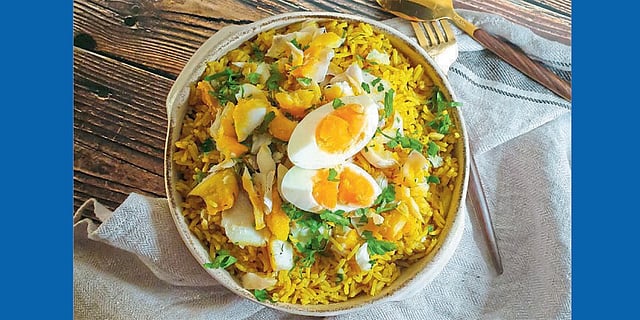 भात शिजला, की त्यात गरजेनुसार मीठ, मासा कुस्करून कोथिंबीर टाकून मिक्स करा, वरून उकडलेली अंडी कापून ठेवा आणि गरमागरम सर्व्ह करा.