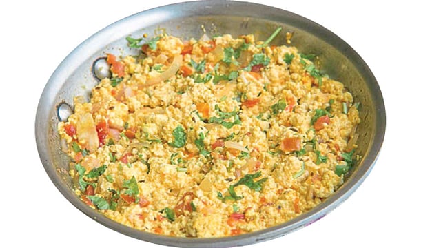 कृती - पनीर किसून घ्या. कढईत दोन चमचे तेल घाला. जिरे, मोहरी तडतडल्यावर कांदा परता. आले-लसूण पेस्ट घाला. टोमॅटो घालून चांगले परता. तिखट, हळद, मसाला घालून पनीर घालून परता. नंतर त्यात दही घालून परता. कोथिंबीर घाला. झक्कास पनीर भुर्जी तयार होईल.