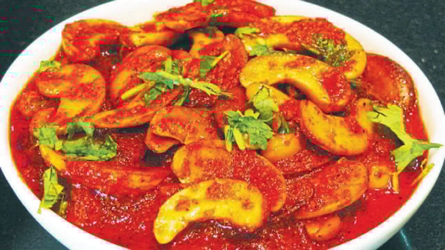 4) आवश्यकतेनुसार पाणी घालून, झाकण ठेवून काजू शिजू द्यावेत.
