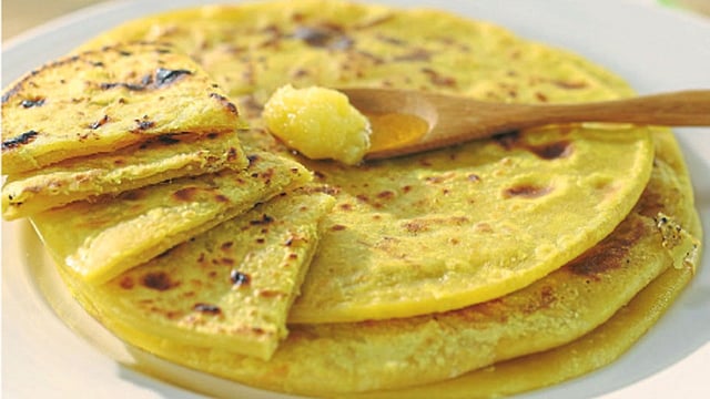 ६) पोळपाटावर थोडी तांदळाची पिठी घेउन हलक्या हाताने पोळी लाटून घ्यावी. तव्यावर खरपूस भाजून घ्यावी. साजूक तूप घालून गरम गरम सर्व्ह करावी. या पोळ्या टिकाऊ असतात. आठ एक दिवस सहज टिकतात. थंड पोळ्या दुधाबरोबर छान लागतात.