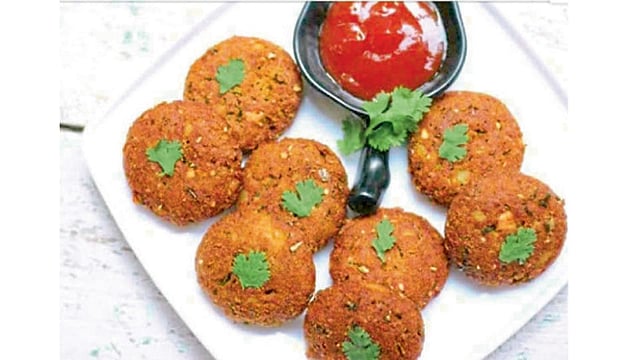 ४) मिश्रणाचे साहित्य भाग करून त्याला हाताने किंवा साच्याने आकार द्यावा. नॉनस्टीक फ्राईंग पॅनमध्ये थोडेसे तेल गरम करत ठेवावे. कटलेटला भाजलेला रवा दोन्ही बाजूने लावून घ्यावा. मध्यम आचेवर दोन्ही बाजूने गोल्डन ब्राऊन भाजून घ्यावे.