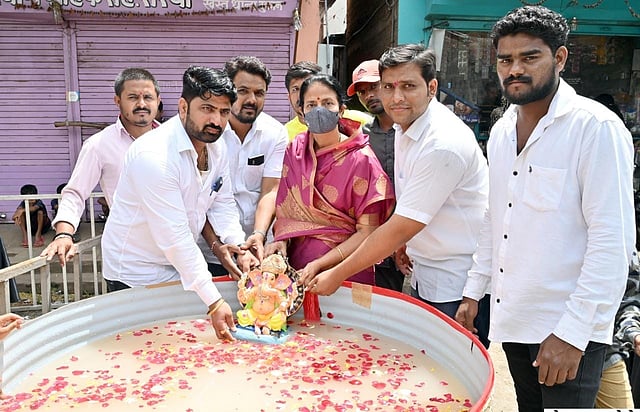 इचलकरंजी : ‘गणपती बाप्पा मोरया, पुढच्या वर्षी लवकर या’च्या गजरात शहरांतील 30 कृत्रिम कुंडावर 10 हजार घरगुती गणपतींना पर्यावरणपूरक निरोप देण्यात आला. दुपारनंतर शहरातील शहापूर खण विसर्जन स्थळाचा परिसर गजबजून गेला होता. रात्री उशिरापर्यंत शांततेत गणेशमूर्तींचे विसर्जन करण्यात आले. पर्यावरणपूरक विसर्जनसाठी सलग दुसऱ्या वर्षी भाविकांनी भरभरून प्रतिसाद दिला.