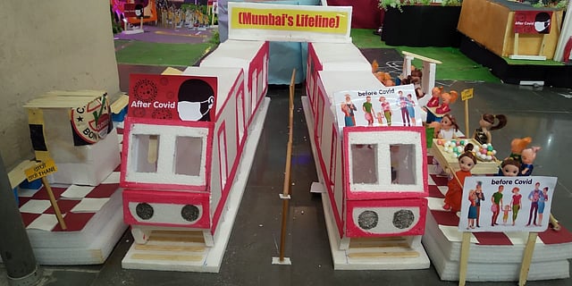 सोमेश हिरेमठ हे सोलापूर शहरातील तुळजापूर वेस भागात राहतात. मुंबईला आयटी कंपनीमध्ये काम करणारे सोमेश हे उत्तम कवीदेखील आहेत. घरात गणपती स्थापन करताना त्यांनी या वर्षी झालेल्या घटनांमधून समाजाला योग्य संदेश देणाऱ्या प्रतिकृती तयार केल्या आहेत. मुंबई लाईफटाइम प्रतिकृतीमध्ये त्यांनी एक वर्षभरापूर्वी लोकल स्थानकावरील गर्दी व कोरोनामुळे रिकाम्या स्थानकांच्या माध्यमातून झालेला बदल दाखवला आहे. सोलापूरचे ग्रामदैवत सिद्धेश्वर मंदिर कोरोनामुळे बंद असल्याने गतवर्षी श्रावण महिन्यातील गर्दी व आता बंद दरवाजे कोरोनाचे परिणाम दाखवतात. सिद्धेश्वर मंदिरांची प्रतिकृती भव्य स्वरूपात साकारली आहे. पंढरपूरच्या विठ्ठल मंदिराची आषाढी वारी व यावर्षी संतांच्या पादुका घेऊन जाणारी बस पाहावयास मिळते. कोरोनामुळे तुळजापूरच्या मंदिराचे बंद झालेले दरवाजे प्रतिकृतीच्या माध्यमातून मांडले आहे.