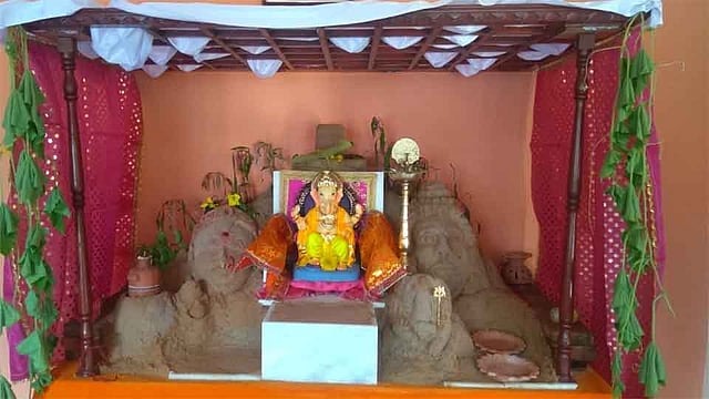 देवरुखनजिक आंबव शेवरेवाडी येथील भाविक विनय माने यांनी दरवर्षी प्रमाणे याही वर्षी घरगुती गणेश सजावटीसाठी माती काम कलाकुसर करुन उत्सवाची शोभा वाढवली आहे. व्यवसायानिमित्त मुंबईत वास्तव्यास असणारे माने कुटुंबिय आंबव गावी येऊन गणेशोत्सव साजरा करतात. यंदाच्या गणेशोत्सवात त्यांनी केलेली आरास लक्षवेधी ठरली आहे. त्यांचा आदर्श घेवून गावातही आता इकोफ्रेंडली सजावट होवू लागली आहे हे त्यांचे यश आहे.