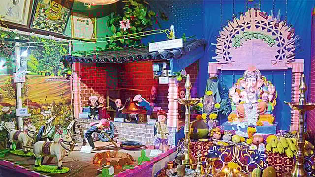 बेळगाव - सर्रास ठिकाणी सार्वजनिक गणेशोत्सव मंडळांकडूनच देखावे सादर केले जातात पण बेळगावातील रयत गल्ली, वडगाव येथे घराघरांत देखावे सादर करण्यात येत आहेत. ही परंपरा 1995 पासून सुरू आहे. प्रत्येक घरात सामाजिक संदेश देणारे देखावे साकारण्यास सुरवात झाली आहे. यंदाही रयत गल्लीतील रहिवाशांनी एकापेक्षा एक सुंदर असे देखावे केले असून ते पाहण्यासाठी रात्री उशिरापर्यंत गर्दी होत आहे.