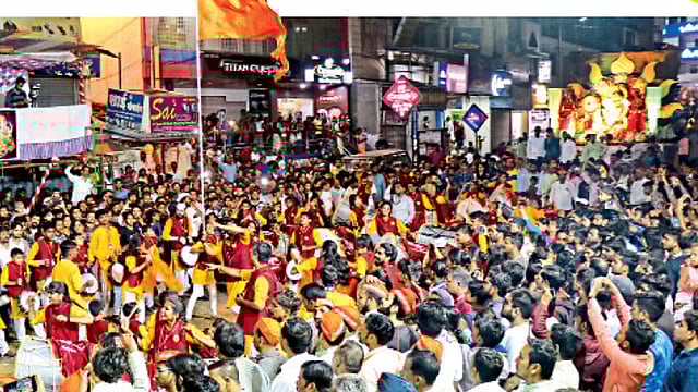 पिंपरीतील लालबहादूर शास्त्री भाजी मंडई व्यापारी संघटनेच्या मिरवणुकीत रंगतदार सनई- चौघडा वादन झाले. केंगार कन्हेर यांनी समई डोक्यावर ठेवून त्यावर पाण्याने भरलेली कळशी घेतली होती. या खेळाने सर्वांचे लक्ष वेधून घेतले. ढोल-ताशा वादनाने वातावरण जल्लोषमय झाले. आकर्षक फुलांची सजावट केलेल्या रथात गणराय विराजमान होते.