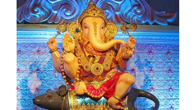 मूषकारूढ स्वरूपातील शाडूच्या मातीची मूळ मूर्ती 1972 साली बनवण्यात आली होती. मंडळाचे कार्यकर्ते आणि तत्कालीन नगरसेवक श्यामसिंग परदेशी यांच्या पुढाकारातून ही मूर्ती घडवून घेतली गेली होती. दरवर्षी रंग देऊन ती मूर्ती उत्सवात ठेवली जात होती. काही वर्षापुर्वी फायबरची मूर्ती तयार करून घेण्यात आली. हीच मूर्ती आता सांगता मिरवणुकीत ठेवण्यात येते. मुर्तीसाठी दहा किलो सोन्याचे आणि वीस किलो चांदीचे दागिने कार्यकर्त्यांच्या सहभागातून घडवण्यात आले आहेत.