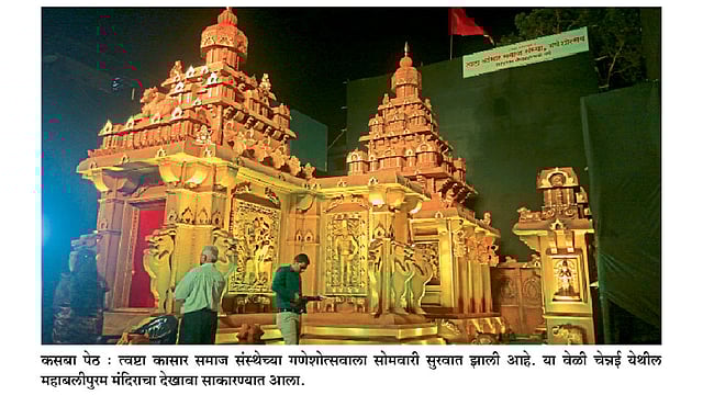 त्वष्टा कासार समाज संस्थेचा यंदा शतकोत्तर रौप्यमहोत्सव असल्यामुळे संस्थेतर्फे गणेशोत्सवाला दोन दिवस अगोदर सुरवात करण्यात आली आहे. गणपतीची स्थापना सोमवारी झाल्यानंतर मंगळवारी चेन्नई येथील महाबलीपुरम मंदिराचा देखावा साकारला. हे मंदिर जागतिक वारसा म्हणून घोषित केलेले आहे. या वेळी भव नृत्यालयातील विद्यार्थिनींनी नृत्य सादर केले. याप्रसंगी मंडळाचे अध्यक्ष सुरेश पोटफोडे, उपाध्यक्ष अजय तांबट, माजी नगरसेविका अनिता डाखवे, राधा पुरोहित मान्यवर उपस्थित होते.