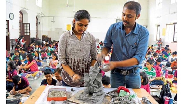 विद्यार्थ्यांच्या कलागुणांना लाभली संधी - ‘सकाळ-एनआयई’, ‘मानवधन’तर्फे शाडू गणेशमूर्ती कार्यशाळा