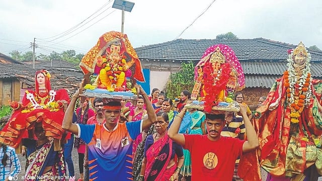 रत्नागिरी : गणपती बाप्पा मोरया......पुढच्या वर्षी लवकर या....चा गजर करत गावागावात गणपतीला निरोप दिला जात होता. कोरोनामुळे मिरवणूका काढल्या जात नसल्या तरीही विसर्जनाचा थाट कायम होता. विसर्जनासाठी नदीपात्राच्या ठिकाणी गणपती मुर्तींचे विसर्जन करण्यासाठी भक्तगण सरसावत होते. वाडी-वस्त्यांमधील ग्रामस्थ डोक्यावर गणपती घेऊन ओळीने किनाऱ्याकडे रवाना होत होते. गौरी-गणपती विसर्जनाचा थाट कोरोनामध्येही कायम होता. जिल्ह्यात पाच दिवसांच्या गौरी गणपतींचे विसर्जन शांततेत झाले. रत्नागिरी जिल्ह्यात मंगळवारी भावपूर्ण निरोप देण्यात आला. रत्नागिरीतील मांडवी समुद्रासह तलाव, विहिरीमध्ये गौरी-गणपतींचे विसर्जन करण्यात आले. त्याची रत्नागिरीतील बातमीदारांक़ून कडून आलेली काही क्षणचित्रे.