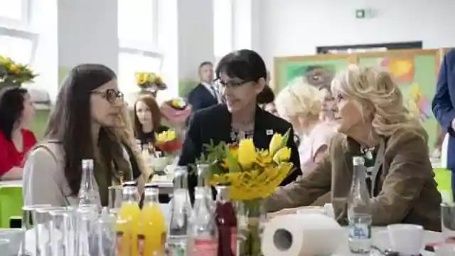रशियाकडून सतत होणाऱ्या हल्ल्यांदरम्यान अमेरिकेच्या फर्स्ट लेडी जिल बायडन (Jill Biden) या कोणत्याही पूर्व माहितीशिवाय रविवारी युक्रेनमध्ये आल्या. जिल बायडन यांनी युक्रेनच्या फर्स्ट लेडी ओलेना झेलेन्स्की यांची स्लोव्हाकियाच्या सीमेजवळ असलेल्या गावातील शाळेत भेट घेतली, अशी माहिती असोसिएट प्रेस या वृत्तसंस्थेने दिली. सोबतच कॅनडाचे पंतप्रधान जस्टिन ट्रुडो (Justin Trudeau) यांनीही अचानक युक्रेनला कोणतीही सूचना न देता भेट दिली. (American First Lady, PM of Canada suddenly arrives in Ukraine)
