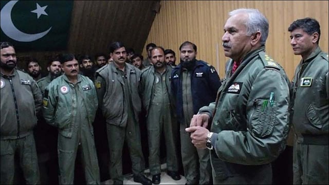 'पाकिस्तानी हवाई दलाने उत्तुंग कामगिरी करताना भारताचे विमान पाडल्याबरोबरच त्यांचा विंग कमांडर अभिनंदन वर्धमान याला पकडले. देशाचे पंतप्रधान इम्रान खान यांनी शांतीदूत म्हणून अभिनंदन यांची सुटका केली. पण, देशापुढे मोठ-मोठी आव्हाने उभी आहेत. यामुळे तु्म्ही सदैव तयार रहा आणि देशाचे संरक्षण करा,' असे आवाहन मुजाहिद अन्वर खान यांनी केले.
