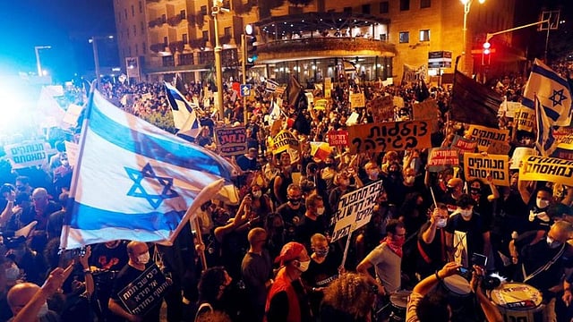 जेरुसलेम : जगभरात कोरोनाने कहर माजवला आहे. सध्या जगात अमेरिका, ब्राझील आणि भारतात कोरोनाचे रुग्ण मोठ्या प्रमाणात वाढत आहेत. हे मोठे देश सोडून इतर लहान देशातही कोरोना पसरत आहे, त्यामुळे तिथली परिस्थीतीही बिकट झाली आहे. इस्त्राईललाही (Israel) देखील कोरोनाच्या झटक्याला सामोरे जावे लागत आहे. सध्या इस्त्राईलमध्येही कोरोनाची साथ मोठ्या प्रमाणात पसरत आहे. वाढत्या कोरोनाच्या रुग्णसंख्येमुळे इस्त्राईली लोकही त्रासलेले दिसत आहेत. यामुळेच शनिवारी रात्री इस्त्राईलचे पंतप्रधान बेंजामिन नेतान्याहू (Benjamin Netanyahu ) यांच्या अधिकृत निवासस्थानाबाहेर हजारो इस्रायलींनी निषेध नोंदवित राजीनामा देण्याचीही मागणी केली. याठीकाणी हजारो इस्त्राईली नागरिक एकत्र आले होते.