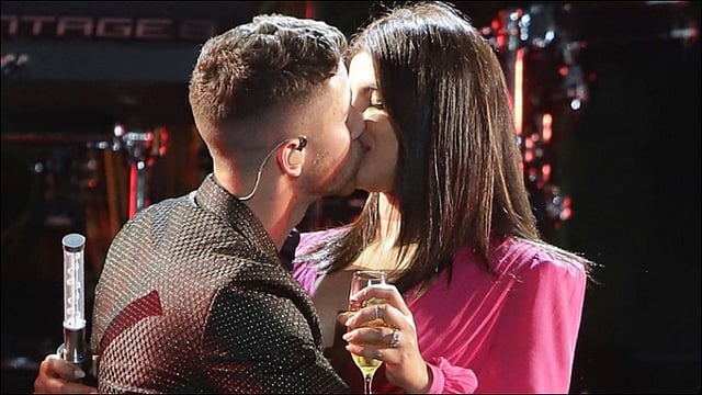 फ्लोरिडाः नववर्षाचे स्वागत करण्यासाठी गाण्यांच्या कार्यक्रमांचे आयोजन करण्यात आले होते. यावेळी अभिनेत्री प्रियांका चोप्रा व तिचा पती निक जोनास यांनी स्टेजवर घेतलेला किस सोशल मीडियावर व्हायरल झाला आहे.