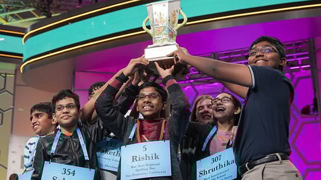 गेल्या वर्षी या स्पर्धेत कार्तिक नेमानी हा अमेरिकेतील 14 वर्षांचा भारतीय वंशाचा विद्यार्थी विजेता ठरला होता. 42 हजार डॉलर रोख व अन्य बक्षिसे त्याने पटकाविली होती. त्याने "कोइनोनिया' (koinonia) या शब्दाचे स्पेलिंग अचूक लिहिले होते. कार्तिक हा सलग 11 वर्षांतील 14 वा भारतीय वंशाचा विजेता ठरला होता. 2017 मध्ये अनया विनय या भारतीय वंशाच्या मुलीने ही स्पर्धा जिंकली होती. 2014 ते 2016 या काळात दोन विजेत्यांची निवड करण्यात आली होती.