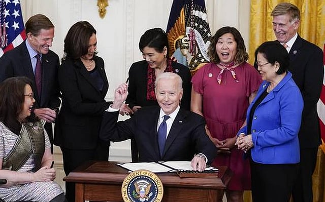 वॉशिंग्टन : अमेरिकेतील बायडेन (US President Joe Biden) सरकारने आज आशियाई वर्णद्वेषविरोधी विधेयकास (anti Asian hate crime) मान्यता दिली. या ऐतिहासिक विधेयकावर स्वाक्षरी केल्यानंतर ज्यो बायडेन यांनी वर्णद्वेषाविरोधात सर्वच सदस्य एकत्र येणे ही अभिमानाची गोष्ट असल्याचे म्हटले आहे. बायडेन यांनी याबद्दल डेमोक्रॅट आणि रिपब्लिकन (Mr. Biden praised Democrats and Republicans for approving the bill) पक्षाच्या सदस्यांचे मनापासून कौतुक केले. अनेक सदस्य समर्थपणे या विधेयकाच्या बाजूने उभे राहिले त्यांचे हे कृत्य कौतुकास्पद असल्याचे बायडेन यांनी म्हटले आहे. (US President Joe Biden signs bill to counter spike in anti Asian hate crime)