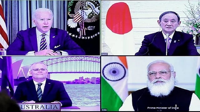 अनौपचारिकरित्या भारत, अमेरिका, जपान व ऑस्ट्रेलिया यांचा क्वाड हा चतुष्कोन अस्तित्वात होता. परंतु, त्यातील राष्ट्रप्रमुखांची एकत्र बैठक झालेली नव्हती. अमेरिकेचे माजी अध्यक्ष डोनाल्ड ट्रम्प यांना क्वाड ची संकल्पना मान्य नव्हती. तसेच, माजी अध्यक्ष बराक ओबामा यांच्या कारकीर्दीतील टीपीपी (ट्रान्स पॅसिफिक पार्टनरशिप) ट्रम्प यांनी मोडीत काढली होती. तरीही अमेरिका, भारत व जपान यांच्या दरम्यान होणारे मलाबार नाविक सराव गेली अऩेक वर्षे चालू आहेत. त्यामुळे चीनची नाराजी वाढली आहे. तथापि, 12 मार्च 2021 रोजी अमेरिकेचे अध्यक्ष जो बायडेन, भारताचे पंतप्रधान नरेंद्र मोदी, जपानचे पंतप्रधान योशिहिदे सुगा व ऑस्ट्रेलियाचे पंतप्रधान स्कॉट मॉरिसन यांच्या दरम्यान पहिल्यांदा झालेल्या आभासी (व्हर्चुअल- अप्रत्यक्ष)) शिखऱ परिषदेने जगाचे लक्ष वेधले. याचे कारण, कोविद -19 च्या वाढत्या प्रादुर्भावाकडे पाहाता, त्याचे लसीकरण, लसींचे वितरण, लस निर्मिती आदींच्या क्षेत्रात या चारही नेत्यांनी सहकार्य करण्याचे तर ठरविलेच, परंतु हिंदी व प्रशांत महासागर हा मुक्त सागरी महामार्ग हवा, असे नमूद करून त्यासाठी प्रयत्न करावयाचे ठरविले.
