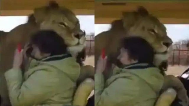 या व्हिडीओमध्ये एक सिंह पर्यटकांच्या वाहनामध्ये शिरताना दिसत आहे. सुरवातीला हे पाहून कोणाच्याही अंगावर काटा येईल. पण सिंह पर्यटकांच्या वाहनात घुसल्यानंतर जे व्हिडीओत दिसतं ते पाहून कुणालाही आश्चर्य वाटेल. सिंह चक्क एका पर्यटकाच्या अंगावर जाऊन त्याला मिठी मारताना दिसत आहे. तर व्हिडीओमध्ये पर्यटक सिंहाची पाठ थोपटताना दिसत आहेत.