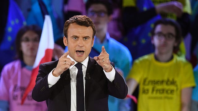 मॅक्रॉन (वय 39) हे या निवडणुकीमधील सर्वांत तरुण उमेदवार आहेत. मॅक्रॉन यांनी 2014-16 या काळामध्ये फ्रान्सच्या उद्योग व अर्थमंत्रालयाची जबाबदारी सांभाळली होती. राजीनामा देऊन सरकारमधून बाहेर पडण्याच्या काही महिने आधीच त्यांनी एन मार्च पक्षाची स्थापना केली. युरोपिअन युनियनकडे स्पष्ट कल असलेल्या मॅक्रॉन यांनी फ्रान्सची अर्थव्यवस्था आधुनिक करण्यासाठी सुधारणा कार्यक्रम राबविण्याची आवश्यकता असल्याची भूमिका स्पष्ट केली असून त्यांना प्रामुख्याने सेंटर-लेफ्ट विचारसरणीच्या नेत्यांचा पाठिंबा मिळाला आहे. फ्रान्सचे अर्थमंत्री असताना व्यवसायाभिमुख राजकीय सुधारणा राबविण्याकडे मॅक्रॉन यांचा कल दिसून आला आहे.