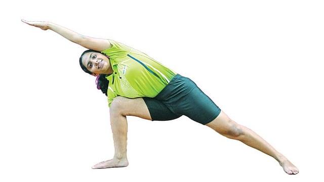 दोन्ही हात बाजूने खांद्याच्या रेषेत जमिनीला समांतर येतील एवढेच वर घ्यावे.