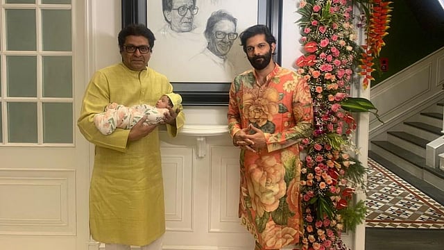 महाराष्ट्र नवनिर्माण सेनेचे अध्यक्ष राज ठाकरे (Raj Thackeray Grandson) यांच्या नातवाच्या नामकरण सोहळा आज पार पडला आहे. शिवतीर्थ या राज ठाकरेंच्या निवासस्थानी हा सोहळा पडला. 'किआन' असं या बाळाचं नामकरण करण्यात आले आहे. या सोहळ्यासाठी ठाकरे कुटुंबीय आणि मित्र परिवार उपस्थित राहणार आहेत. राज ठाकरेंचे त्यांच्या नातवासोबतचे खास फोटो पाहूया..