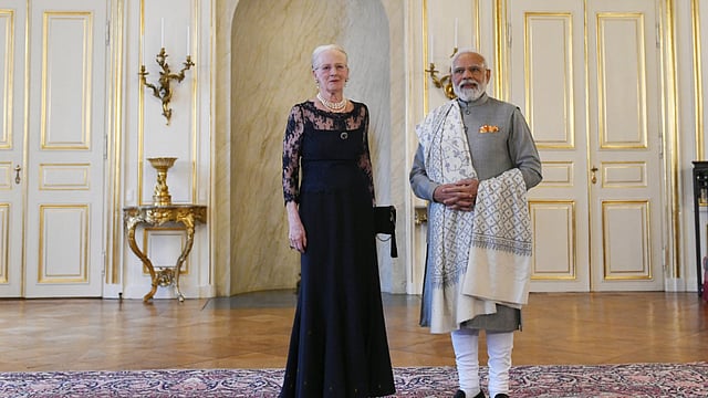 पंतप्रधान मोदी सध्या तीन दिवसांच्या युरोप दौऱ्यावर आहेत. मंगळवारी ते डेन्मार्क येथे पोहोचले. यावेळी त्यांचे जंगी स्वागत करण्यात आले. तसेच मोदींनी डॅनिश पंतप्रधान मेटे फ्रेडरिक्सन यांची भेट घेतली . दोन्ही नेत्यांनी भारत-डेन्मार्क ग्रीन स्ट्रॅटेजिक पार्टनरशिपबद्दल चर्चा केली.