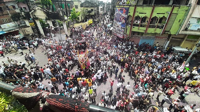 नागपूर : आज तान्ह्या पोळ्याच्या दुसऱ्या दिवशी नागपुरात मारबत उत्सव (marbat celebration nagpur) साजरा करण्यात आला. यंदा कोरोनाचं सावट असल्याने मारबत उत्सव कमी लोकांमध्ये साजरा करण्यात येईल असे समितीकडून सांगण्यात आले होते. त्यातच नागपुरात कोरोना रुग्णसंख्या (nagpur corona cases) वाढतेय. 'कोरोनाले... घेऊन... जाय...गे...मारबत', असं साकडं नागपूरकरांनी मारबतीला घातलं होतं. मात्र, उत्सवातील तुफान गर्दी पाहून खरंच (crowd in marbat celebration)मारबतीनं कोरोना नेला की काय? असाच प्रश्न पडतोय. सकाळचे छायाचित्रकार प्रतिक बारसागडे यांनी मारबत उत्सवातील गर्दीचे टिपलेले हे काही दृश्य...