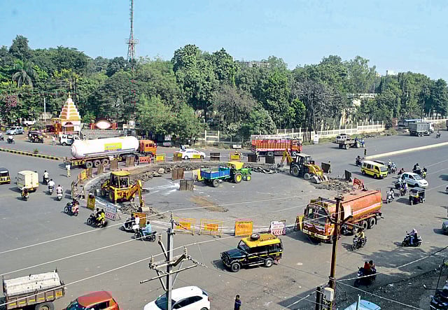 शहरातील महामार्ग क्रमांक सहाच्या चौपदरीकरण सुरू आहे. यात आकाशवाणी चौकात एकूण ३० मीटर रुंद हायवे. आणि मधेच ३० मीटर व्यासाचे सर्कल. म्हणजे नाकापेक्षा नथनी मोठी आहे. आधीचा हायवे सर्कलमुळे पूर्ण दाबला गेला. म्हणून वाहनधारकांना चौकाजवळील मजूर सोसायटीच्या पायऱ्यांना खेटून जावे लागत आहे. शहरातील कोणतेही रस्ते करणे म्हणजे रस्ते कमी अन् वाद जास्त, असा अनुभव जळगावकर घेत आहे.