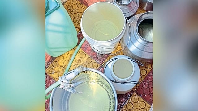 जळगाव : मागील काही दिवसांपासून जळगाव शहरातील द्वारकानगर परिसरात अशुद्ध व गढूळ पाणीपुरवठा होत आहे. भांड्यांमध्ये पाणी भरल्यानंतर ते हिरवे, पिवळे दिसून येत आहे. त्यामुळे, नागरिकांना पिण्याच्या पाण्याचे जार विकत घ्यावे लागत आहेत.