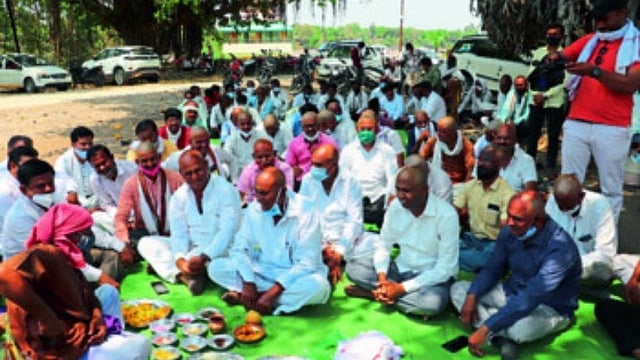 सर्वांना १२ दिवस जेलमध्ये डांबून ठेवणाऱ्या महाविकास आघाडी सरकारच्या निषेधार्थ बुधवारी (ता. ७) आमदार चव्हाण यांच्या आवाहनानुसार शेतकऱ्यांनी श्रीक्षेत्र ऋषीपांथा (बहाळ, ता. चाळीसगाव) येथील महादेव मंदिरावर एकत्र येऊन सामूहिक मुंडण केले. या वेळी शेतकरी विरोधी महाविकास आघाडी सरकारचे तेरावे देखील घातले. या वेळी ब्राह्मणाच्या हस्ते तीन पाय असलेल्या खुर्चीवर ‘तिघाडी सरकार-भावपूर्ण श्रद्धांजली’ नावाच्या फोटोची विधिवत पूजा करून महाविकास आघाडीचे श्राद्ध देखील घालण्यात आले. या वेळी उपस्थित शेतकऱ्यांनी महाविकास आघाडी सरकारच्या विरोधात जोरदार घोषणाबाजी केली. आमदार चव्हाण यांच्यासह पंचायत समितीतील गटनेते संजय पाटील, पालिकेतील गटनेते संजय पाटील, पंचायत समितीचे माजी सदस्य दिनेश बोरसे आदी भाजपचे पदाधिकारी व कार्यकर्ते उपस्थित होते. दरम्यान, शेतकऱ्यांनी ठिकठिकाणी आमदार चव्हाण यांचे स्वागत केले.
