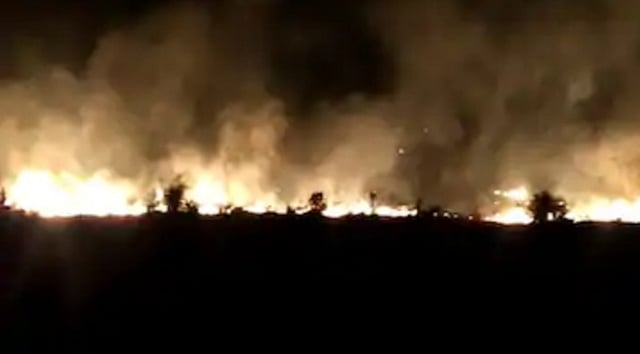 शिरसोली रस्त्याच्या परिसरात बुधवारी रात्री अचानक आग लागली. बघता बघता दीडशे एकर जंगल परिसरात आग वेगाने पसरली. आगीचा प्रकार लक्षात येताच काही व्यक्तींनी अग्निशमन दलाला घटनेची माहिती दिली. यानंतर अग्निशमक दलाच्या बंबांनी आग विझविण्यात आली.