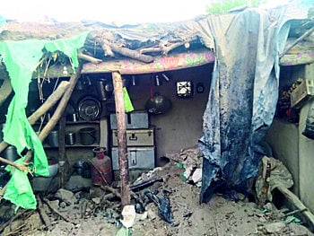 उमरखेड येथे आज दुपारी अडीच ते तीनच्या सुमारास वातावरणात हवेचा जोर अचानक वाढला. यामुळे मातीच्या घराचे धाबे व भिंत कोसळली. यावेळी घरात झोपलेल्या सख्ख्या तीन बहिणी दाबल्या गेल्या. यात नयना दीपक सोनवणे ही दीड वर्षाच्या बालिकेचा जागीच मृत्यू झाला; तर शालू दीपक सोनवणे (वय ३) व शारदा दीपक सोनवणे (वय ५) या दोन्ही बहिणी गंभीर जखमी झाल्या आहेत. त्यांना तत्काळ कजगाव येथील प्राथमिक आरोग्य केंद्रात हलविण्यात आले. तेथून रुग्णवाहिकेने चाळीसगाव येथील ग्रामीण रुग्णालयात दाखल करण्यात आले. ही घटना घडली, तेव्हा मुलीचे वडील दीपक सोनवणे हे कामावर गेले होते; तर आई अंगणात धुणे धूत होती. अचानक घर कोसळल्याने आईने एकच आरडाओरडा केल्याने परिसरातील रहिवासी धावून आले. मातीचे ढिगारे बाजूला सारत त्याखाली दाबल्या गेलेल्या मुलींना बाहेर काढले. माती, दगड व लाकडाचा थर तिन्ही चिमुरडींवर पडल्याने त्या अत्यव्यस्थ झाल्या होत्या. उमरखेड हे छोटेसे असल्याने गावात ठराविक ग्रामस्थ होते. मुलींचे आजोबा शिवाजी भिल यांच्यासह श्यामराव पाटील, प्रवीण जाधव, रघुनाथ भिल, गोकुळ पाटील व इतरांनी मदतकार्य केल्याने दोन्ही बहिणींचा जीव वाचला. ही घटना कळताच सरपंच उमेश देशमुख, सदस्य राजेंद्र बच्छे, सुनील महाजन, मंगा भिल, सुमनबाई भिल, ग्रामसेवक एस. बी. मोरे यांनी घटनास्थळ गाठले. तहसीलदार माधुरी आंधळे, कजगावचे मंडलाधिकारी बी. डी. पाटील, भोरटेकचे तलाठी रत्नदीप माने, कजगावचे वैद्यकीय अधिकारी डॉ. प्रशांत पाटील, कोतवाल कविता सोनवणे यांनीही भेट देऊन पाहणी केली. या घटनेमुळे सोनवणे परिवार अक्षरशः उघड्यावर आला आहे. या कुटुंबाला तत्काळ शासकीय मदत मिळावी, अशी मागणी होत आहे.