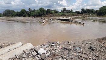 चाळीसगाव ः तालुक्यात सोमवारी झालेल्या मुसळधार पावसामुळे (Heavy Rain) तितूर नदीला पूर (Titur River Flood) आल्याने पुराच्या पाण्यात वाघळी (ता. चाळीसगाव) गावातील चांभार्डी गावाकडे जाणारा पूल वाहून (Bridge Broken) गेला. त्यामुळे दोन्ही गावांचा सध्या संपर्क पूर्णपणे तुटला आहे. पुराच्या पाण्याचा फटका नदीलगतच्या शेतांनाही (Farm) बसला आहे. या भागातील नुकसानीचे पंचनामे करुन चांभार्डीवासीयांसाठी महत्त्वाचा असलेला हा पूल तातडीने उभारावा, अशी मागणी होत आहे.