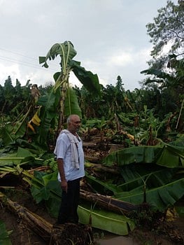 चोपडा : वादळी वाऱ्याने तालुक्यातील पश्चिम भागातील घोडगाव, वाळकी, शेंदणी, मालखेडा, कुसुंबा, अनवर्दे बु. गणपूर, भवाळे, वढोदा या गावांतील केळी, पपई, मका, ज्वारी, कापूस या पिकाचे नुकसान केले होते. पुन्हा सोमवारी दुपारी तीन वाजेच्या सुमारास वादळी वारा व पावसाने अनवर्दे, मोहीदे, दगडी, वढोदा या गावातील केळी पिकाचे नुकसान केले आहे.