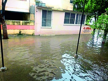 दुभाजकामुळे घरांमध्ये पाणी