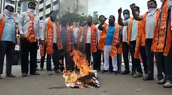 जळगाव : कर्नाटक सरकार ने छत्रपती शिवाजी महाराज यांचा पुतळा हटवल्या प्रकरणी. शिवसेना जळगाव तालुका महानगर तर्फे कर्नाटक राज्यातील भाजप सरकार चा पुतळा दहन करुन निषेध करण्यात आला.