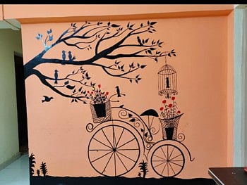 हर्षदा व विशाखा म्हणाल्या आम्हांला व आईला चित्रकलेची फार आवड आहे. आम्ही कॉलेज क्लास चालू असताना चित्रकलेला फार वेळ देऊ शकलो नाही. पण कोरोनाच्या सदयस्थितीत बाहेर पडता येत नाही. कॉलेज नाही की क्लास नाही. त्यामुळे वेळ चांगला घालवण्यासाठी चित्र काढणेच योग्य असे ठरवले. कागदावर चित्रे काढता काढता आम्ही भिंतीवर पेटीग करायचे ठरवले. टे प्रकारातील चित्र आम्ही हॉलच्या भितीवर काढले. निसर्ग पाहिला की मन उल्हासित व आनंदी होते. झाडे लावा व झाडे जगवा हा संदेश ही समाजाला मिळेल हा उद्देश होता.