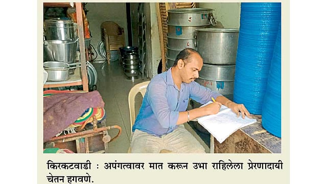 पुणे - धडधाकट शरीर असूनही केवळ इच्छाशक्ती नसल्याने जीवनात अपयशी झालेले अनेक लोक आपण पाहतो. काही लोकांची इच्छाशक्ती असते; परंतु त्या इच्छाशक्तीला प्रत्यक्ष कृतीची जोड मिळत नाही म्हणूनही अपयशी झालेल्यांची अनेक उदाहरणे आहेत. अशा लोकांपुढे जन्मत:च पोलिओमुळे अपंगत्व आलेल्या चेतन याने यशस्वीपणे व्यवसाय चालवत एक नवीन आदर्श निर्माण केला आहे.