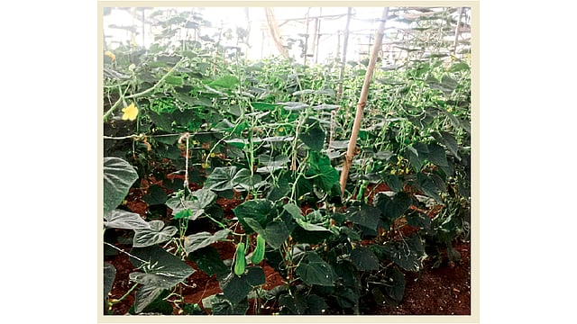 सांगवडे येथील प्रगतशील शेतकरी सुरेश राक्षे यांनी यापूर्वी आपल्या पॉलिहाउसमध्ये दुधी भोपळा, दोडके, कारले आदी जातीच्या भाजीपाला पीक घेण्याचा यशस्वी प्रयोग केला होता. या प्रयोगात नेहमीपेक्षा उत्पादनात दुप्पट वाढ झाल्याचे त्यांना दिसून आले होते. या वर्षी त्यांनी आपल्या पंधरा गुंठे शेतातील पॉलिहाउसमध्ये प्रथमच काकडीचे पीक लावले आहे. सध्या या पॉलिहाउसमधील काकडी तोडणीला आली असून, बाजार चांगले राहिले तर किमान एक लाखाचे उत्पादन निघण्याची शक्यता त्यांनी व्यक्त केली आहे.