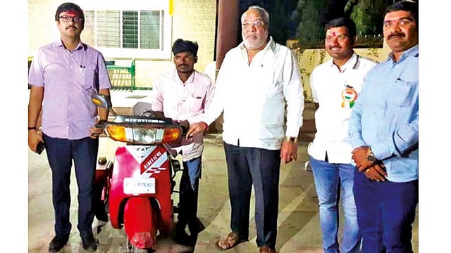 सहा महिन्यांपूर्वी राजू हा कदम कुटुंबीयांच्या शेतातील विहिराचे काम घेण्यासाठी गेला होता. त्याच्याकडे पाहून तो हे काम करील किंवा नाही, याची शाश्वती (खात्री) कदम कुटुंबीयांना नव्हती. त्याच्या कामाची गरज, तळमळ, जिद्द, चिकाटी आणि कष्टाच्या जोरावर त्यांने दिव्यांग असूनदेखील दिलेल्या वेळेच्या अगोदर काम प्रमाणिकपणे पूर्ण केले. त्यांच्या या प्रामाणिकपणाबद्दल श्रीनाथ म्हस्कोबा साखर कारखान्याचे संचालक रामदास ट्रान्सस्पोर्टचे मालक पांडुरंग कदम, पोलिस पाटील लक्ष्मण कदम, विलास कदम, माउली कदम, नवनाथ कदम परिवाराच्या वतीने राजूला चारचाकी मोफत मोटारसायकल दिली.