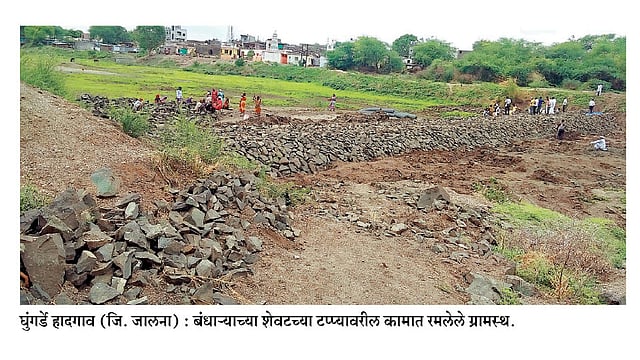 घुंगर्डे हादगाव येथील गल्हाटी नदी गावाजवळूनच वाहते. ग्रामस्थांनी एकत्र येत या नदीवर गॅबियन पद्धतीचा बंधारा उभारला आहे. दोनशे फूट लांबीच्या या बंधाऱ्याला सुमारे दहा लाखांपर्यंत खर्च आला असून, तो संपूर्ण खर्च आर्ट ऑफ लिव्हिंग या संस्थेने केला आहे, तर संपूर्ण ग्रामस्थांनी यात उत्स्फूर्त सहभाग घेत श्रमदान करून बंधारा उभारणीच्या कामात आपले योगदान दिले आहे. या बंधाऱ्यांमुळे गल्हाटी नदीचे पाच किलोमीटर लांबीचे पात्र कायम पाण्याने भरलेले राहणार असल्याने ग्रामस्थांमध्ये आनंदाचे वातावरण आहे. बंधाऱ्याचे काम नुकतेच पूर्ण झाले असून आता जोरदार पावसाची प्रतीक्षा आहे.