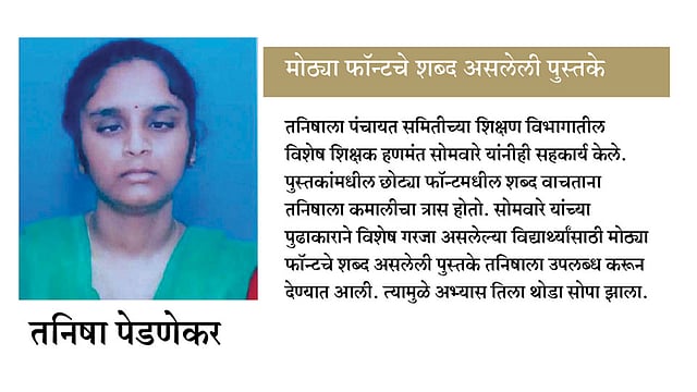 राजापूर - जन्मजात सुमारे पंचाहत्तर टक्के अंध. तरीही उच्च ध्येय गाठण्याची महत्त्वाकांक्षा. अपंगत्वाने खचून न जाता यशाचे शिखर गाठण्याचा नेहमीच तिच्या ध्यास. त्यामुळे आत्मिक बळाला प्रयत्नांची जोड देत तालुक्यातील नाणार येथील तनिषा पेडणेकरने यशाला गवसणी घातली. तनिषाने मदतनीसाच्या साह्याने आठवीच्या शिष्यवृत्ती परीक्षेमध्ये तीनशेपैकी १४६ गुण मिळवले.