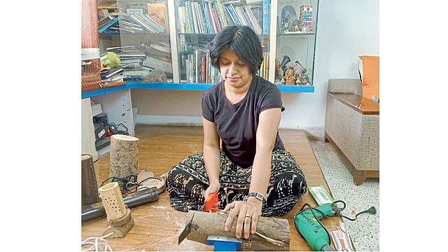 आदिती म्हणाली, ‘‘पावसाळ्यात घराजवळच्या झाडाची फांदी पडली. हिचं काय करता येईल, याचा मी समाज माध्यमातून शोध घेतला. काहीजणांचे प्रयोग ध्वनिचित्रफितीतून कळले. मग मी लाकूड कापण्यासाठी करवत, कापताना लाकूड धरून ठेवणारं व्हाइस आणि छिद्र करण्यासाठी ड्रिलिंग मशिन ही आयुधं जमवली. गोल चकत्या कापून, त्यांच्या वैशिष्ट्यपूर्ण रचना करत लॅम्प बनवले. पणत्या ठेवण्यासाठी शोभिवंत स्टॅन्ड तयार केले. बांबू कापून, त्यापासून कलात्मक व उपयुक्त वस्तू बनवण्याचा छंद जडला. बुरुडआळीत फेऱ्या वाढल्या. तिथल्या एका काकांची मदत कटाई सोपी करण्यासाठी झाली.’’