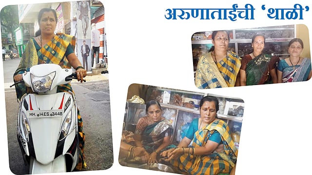 पुण्यापासून साधारण १५० किलोमीटरवर मंचर हे बाजारपेठेचं गावं. छोटे रस्ते, छोटी घरं असं गावाचं रूप सांगणाऱ्या खुणा इथं पावलोपावली दिसतात. या गावात एक छोटं दुकान अरुणाताईंनी थाटलं आहे. तिथंच त्यांची भेट झाली. एकाच जागेत पार्टीशन घालून त्याचे दोन भाग केलेले. बाहेरच्या भागात काचेच्या कपाटात वेगवेगळ्या प्रकारचे पापड मांडून ठेवलेले. आतल्या छोट्या भागात गॅस, काही मोठे डबे आणि स्वयंपाकासाठी लागणारं जुजबी सामान. दोन-तीन बायका बसू शकतील, अशी रिकामी जागाही त्यातून तयार केलेली. एवढ्या छोट्या गावात, छोट्या जागेत ही बाई तीन-चारशे माणसांचा स्वयंपाक करते. लाखोंच्या उलाढाली करते, हे वरकरणी पटत नव्हतं.