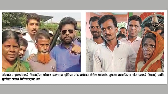 दुर्गाई जळगावचे. त्यांनी मराठीतून विचारपूस केली. त्यांनी या महिलेची माहिती झारखंड मुक्ती मोर्चाचे युवा नेता अमित कश्यप यांना देत मदतीसाठी आवाहन केले. दुर्गाई व कश्यप यांनी त्यांचा फोटो ‘फेसबुक’वर शेअर्स केला अन् हे सर्व बघून धावून आले ते पुण्याचे योगेश मालखरे. त्यांनी आतापावेतो साडेतीनशेच्या आसपास भरकटलेल्या वेडसरांना आपल्या घरी पोचवले आहे. पुण्याहून त्यांनी आपल्या स्माइल प्लस सोशल संस्थेतील विशाल चव्हाण, पवार, हेमंत ठाकरे या मित्रांना घेऊन थेट झारखंड गाठले. तब्बल १५०० किलोमीटरचा प्रवास करून त्यांनी वाट चुकलेल्या या आईला आपल्यासोबत घेतले. तीन दिवसांचा प्रवास करून आज दुपारी त्यांनी नांदगाव गाठले. नगराध्यक्ष राजेश कवडे यांच्या कार्यालयात हिराबाईंची व त्यांच्या मुलांची भेट झाली. सहा महिन्यांनंतर झालेल्या आईची आणि मुलांची भेट भारावून टाकणारी होती.
