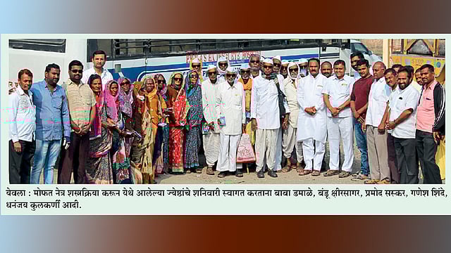 येवला - राजापूर व नगरसूल (ता. येवला) जिल्हा परिषद गटातील नेत्ररुग्णांची भाजपचे प्रदेश कार्यकारिणी सदस्य बाबा डमाळे यांच्या पुढाकाराने मोफत तपासणी करत त्यांची पुणे येथे नेत्रशस्त्रक्रिया करण्यात आली. या रुग्णांना नवदृष्टी देत सोमवारी (ता. १५) येवला येथे आणले. नगराध्यक्ष बंडू क्षीरसागर यांच्या हस्ते मकरसंक्रांतीनिमित्त या रुग्णांना तीळगूळ व साईबाबा पुस्तिकाचे वाण देऊन बाबा डमाळे यांनी नावीन्यपूर्ण मकरसंक्रांत साजरी केली.