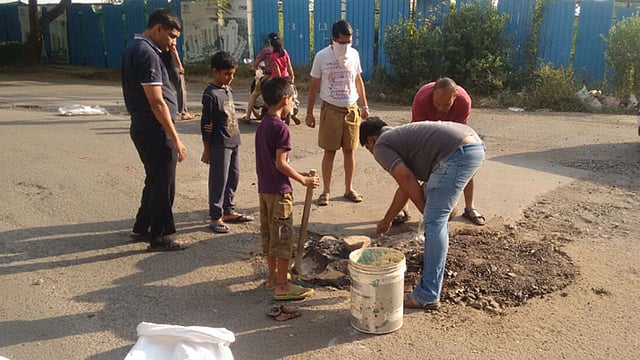 ग्रामपंचायत हद्दीत येणारा हा भाग खासगी हद्द होती. रस्ते ताब्यात दिले नसल्याने तेथे ग्रामपंचायत काही करू शकत नव्हती. धायरी ग्रामपंचायत हद्दीत येणारा हा भाग आता नव्याने पुणे महापालिकेत समाविष्ट झाला आहे. हद्दीलगतची गावे समाविष्ट केल्याने धायरी गावदेखील महापालिकेत आले आहे. त्यानंतरही येथील रस्ते करण्याची विनंती नागरिकांनी सुरूच ठेवली. मात्र त्याला प्रशासनाचा त्याला प्रतिसाद मिळत नसल्याने अखेर नागरिकांनी खड्डे बुजविले. आमदार भीमराव तापकीर, पंचायत समिती सदस्य अश्विनी पोकळे, नगरसेवक राजाभाऊ लायगुडे, हरिदास चरवड, नीता दांगट, राजश्री नवले यांच्या सहकार्याने उर्वरित खड्डे अखेर बुजविण्यात आले.
