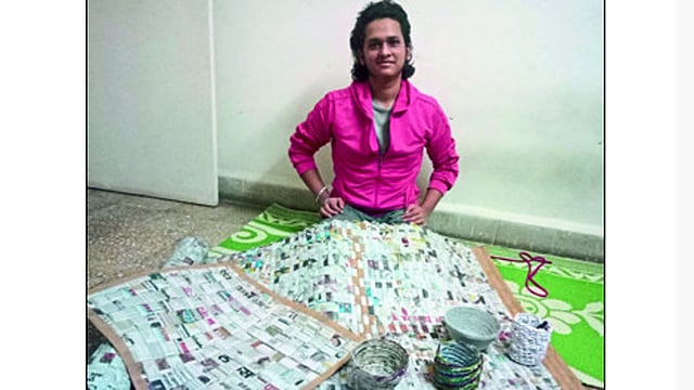 सृजनने अलीकडेच बारावीची परीक्षा दिली. नंतर मिळालेल्या सुट्टीत घरच्या घरी व्यायाम करण्यासाठी एखादं साधन बनवूया असा विचार त्याने केला. तो म्हणाला, ""एका पोत्यात मी जुनी वर्तमानपत्रं भरली. काही दगडही भरले. वेट लिफ्टिंगसाठी मी तयार केलेलं मजेशीर साधन तयार झालं होतं. काही दिवस मी याच्या साह्याने व्यायाम केला. दुसरं काही तरी करून पाहायची इच्छा झाली. पण, पोत्यात भरलेल्या रद्दीचाही उपयोग वेगळ्या प्रकारे करून पाहायचा विचार केला. माझी आई नीला आपटे बालशिक्षणाचं काम करते. ती खूप प्रयोगशील आहे. ती वर्तमानपत्रांच्या फेरवापरातून निरनिराळ्या उपयुक्त वस्तू बनवते. मीही तिचं पाहून काही वस्तू करायला सुरवात केली. तिला कागदांची गुंडाळी करून, त्या दाबून पट्ट्या करताना पहात असतो. या पट्ट्या विणून ती छोटे चौरस तयार करते. मी तेच तंत्र वापरून बसण्यासाठी आसनं (बसकर) तयार केलं. मग उत्साह वाढला. पाच फूट उंचीचा माणूस सहज झोपू शकेल, एवढी लांब-रुंद चटई तयार केली. कागदाच्या पट्ट्यांपासूनच पेन स्टॅण्ड व बाउल सुद्धा बनवले.''